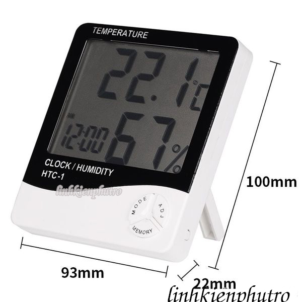 Đồng hồ đo nhiệt độ và độ ẩm HTC-1 là thiết bị đo đa năng tích hợp ba chức năng đo nhiệt độ, đo độ ẩm và đồng hồ điện tử, cực kỳ tiện lợi cho mọi không gian sống hoặc làm việc. Với thiết kế mặt hiển thị LCD lớn, rõ ràng, sản phẩm giúp người dùng dễ dàng quan sát các thông số môi trường trong phòng một cách nhanh chóng.