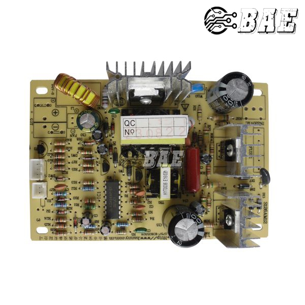 Mạch sử dụng thiết kế tổ ong với hai tản nhiệt nhôm lớn, giúp làm mát các linh kiện công suất như MOSFET và IC nguồn, hạn chế sinh nhiệt và tăng độ bền mạch. Ngoài ra, tụ lọc và cuộn cảm chất lượng cao giúp giảm nhiễu, ổn định điện áp đầu ra và nâng cao hiệu suất hoạt động.